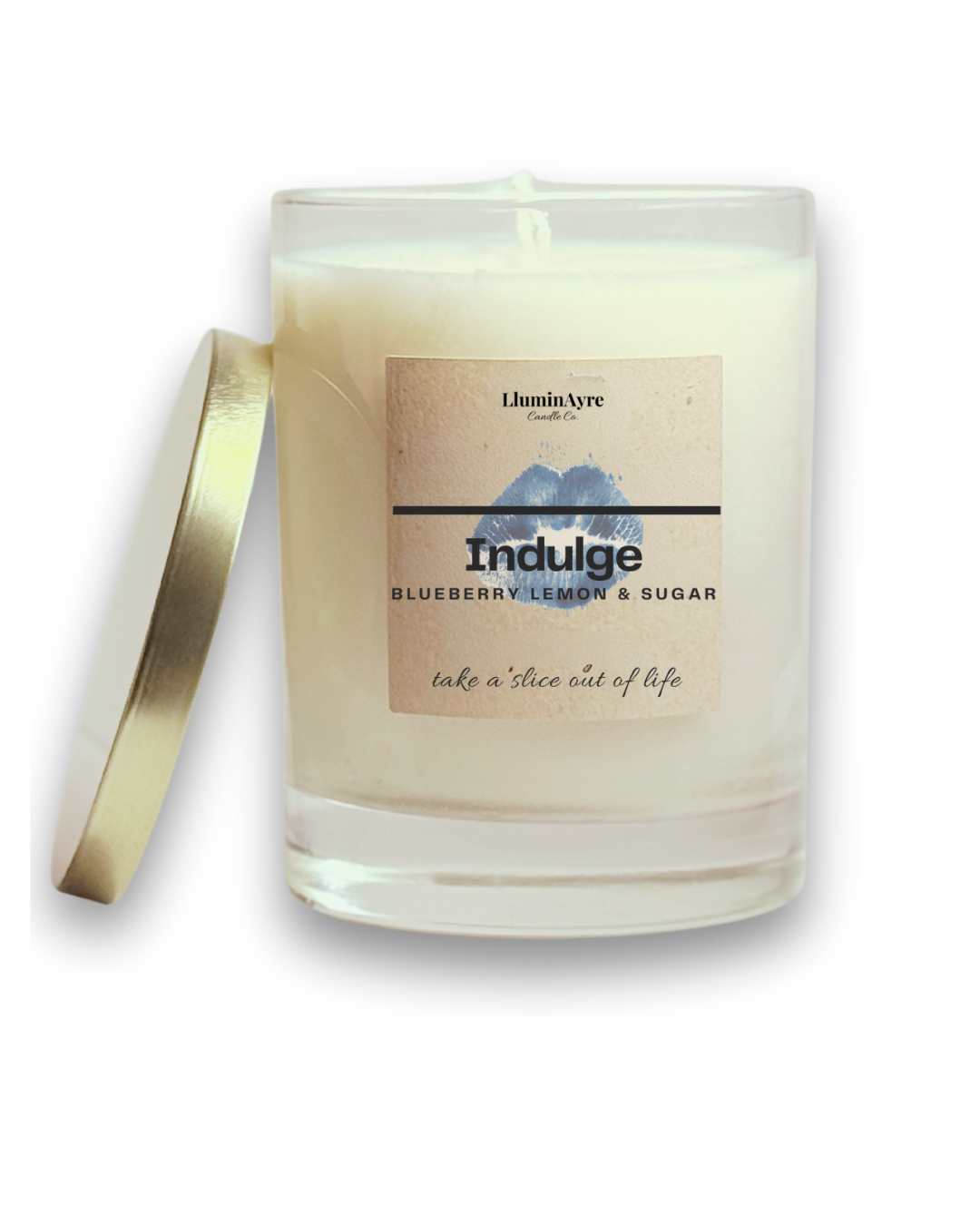 Indulge opens bright and juicy — blueberry and lemon together, fresh and lightly tart. As it burns, soft sugar comes forward and smooths the edges, filling the room with a warm, inviting sweetness.